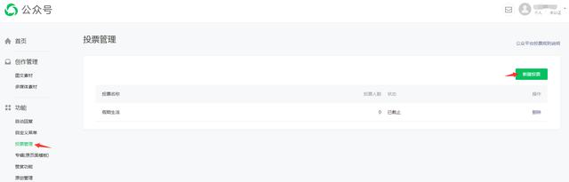 1、登录公众平台,首页点击功能栏目下的投票管理,新建投票。